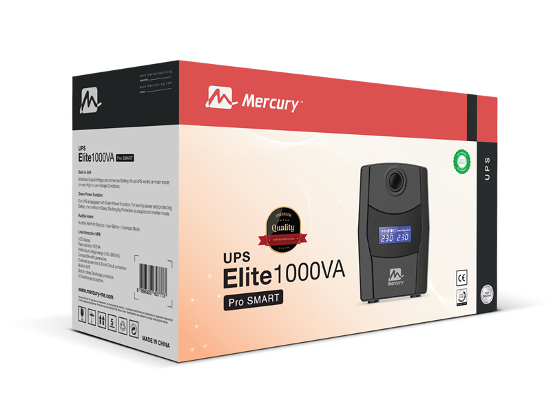 | ELITE 1000VA Pro Smart | LCD display, Real capacity 1000VA, Wide input voltage range (162~290VAC), Compatible with generators, Overload protection, Short circuit protection, Built-in AVR, Battery deep discharge protection, & overcharge protection. |